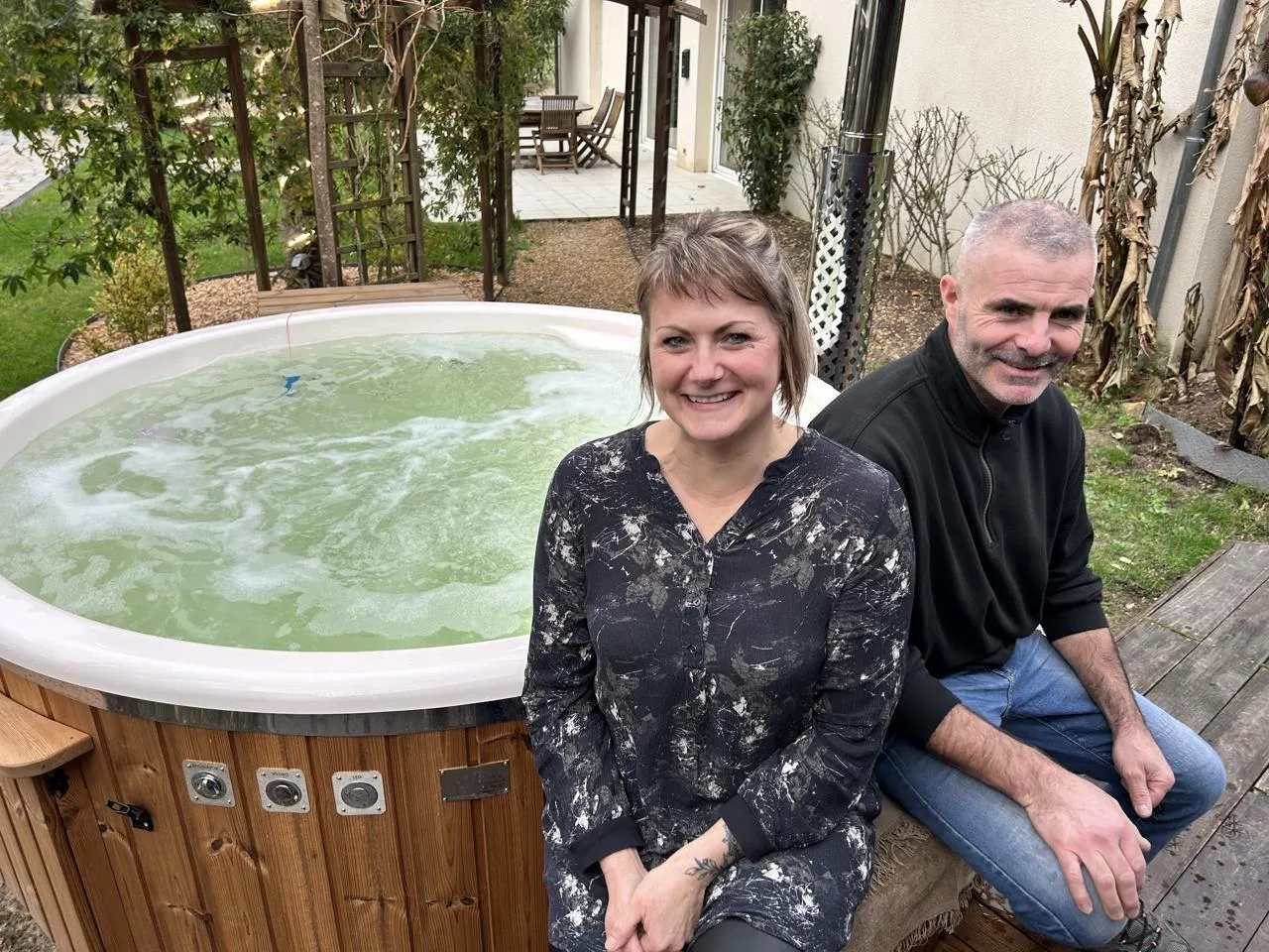 Céline et Alexandre ont déjà commencé à effectuer des travaux, comme ici avec l’installation d’un bain nordique. © Le Maine Libre