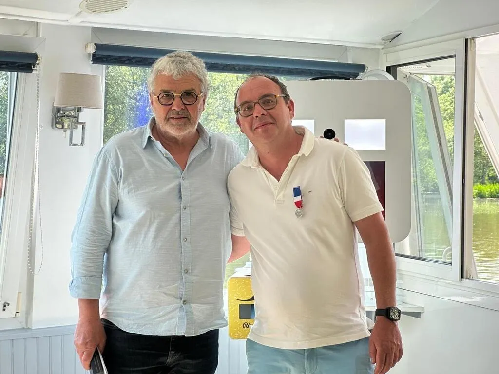 Le 1er mai 2025, pour les 35 ans de Frémont Affûtage, Didier Frémont a remis la médaille du travail pour 20 ans à son fils, Pierre-Henri Frémont. © Frémont Affûtage
