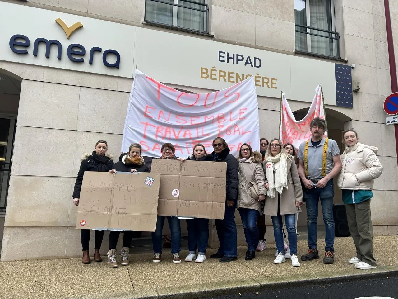 Depuis le début du mois de janvier, une partie du personnel de l’Ehpad Bérengère, située dans le centre-ville du Mans, se mobilise, réclamant une revalorisation salariale. Un nouveau débrayage a eu lieu ce jeudi 5 février à la mi-journée, devant l’entrée de l’établissement.