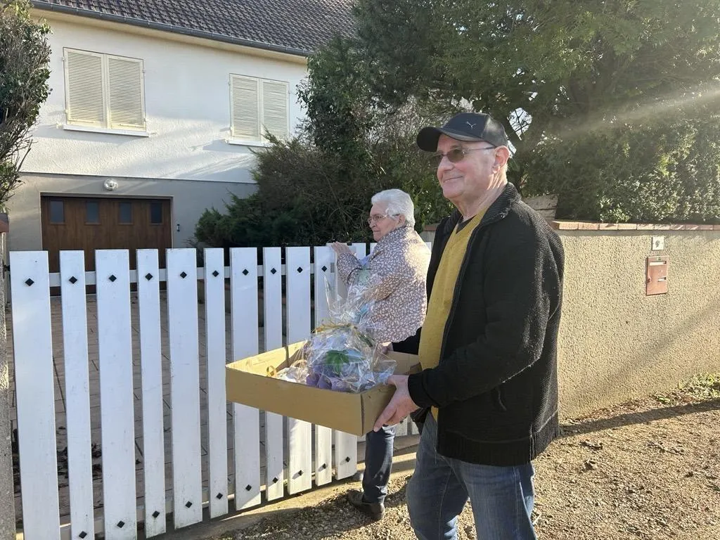 À Crosmières, le Collectif des voisins pense à ses anciens et a distribué, ce mardi 30 décembre 2025, des petits cadeaux à ceux qui ne pourront pas se déplacer pour la soirée du réveillon. © Ouest France