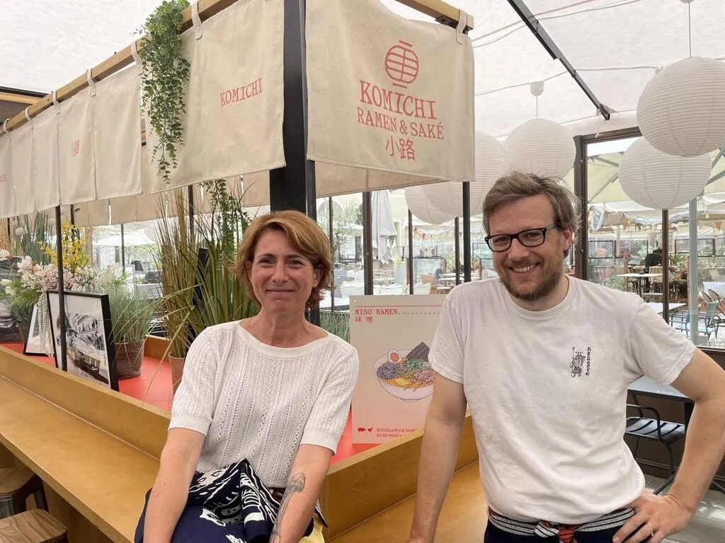 Céline Vial et Maël Hemmer, associés, ont ouvert ensemble un restaurant de ramen et saké à la Visitation, au Mans (Sarthe). © Ouest-France