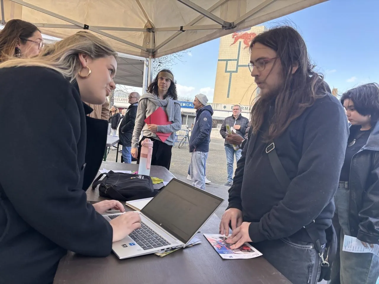 Ce lundi 30 mars 2026, place des Sablons au Mans. Durant trois jours, le forum Atout jeunes se tient au cÅ“ur du quartier pour proposer des rencontres autour de la formation et la découverte des métiers. © Ouest-France