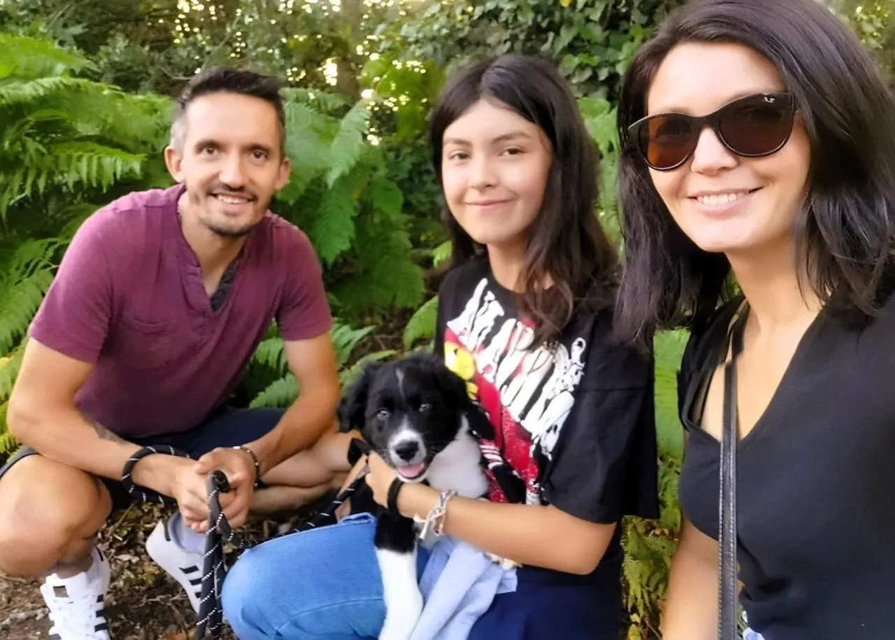 Renaud Ségard et Laurence Joursand entourent Myliane, leur fille, et Hélios, le chien de la famille. Ils espèrent ouvrir leur hôtel à chats d’ici le premier trimestre 2026. © DR