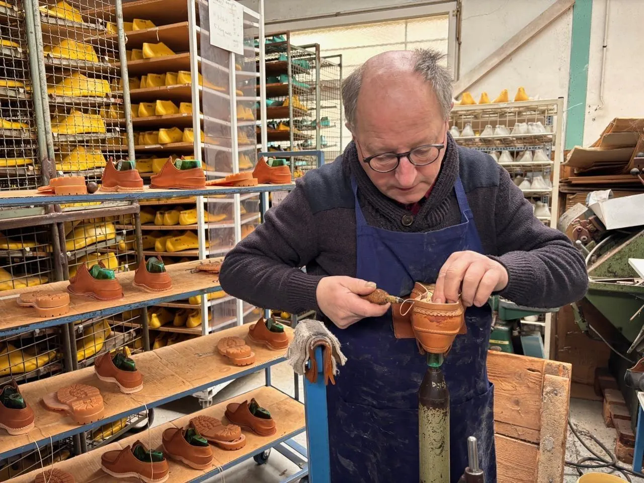 photo  joseph malinge, en pleine création d’une chaussure cousu norvégien.  ©  ouest-france. 1