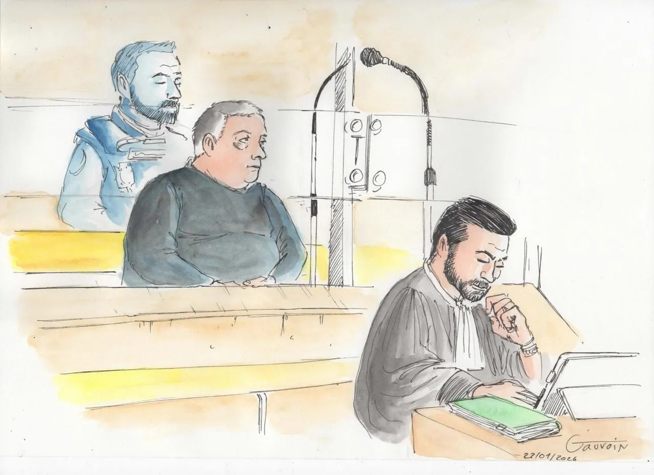 Ancien agent pénitentiaire, l’accusé n’a pu expliquer pourquoi il est passé à l’acte, la nuit du 2 au 3 mars 2023, à Coulans-sur-Gée. À droite, son avocat Me Jonathan Proust. © Gauvain Salles