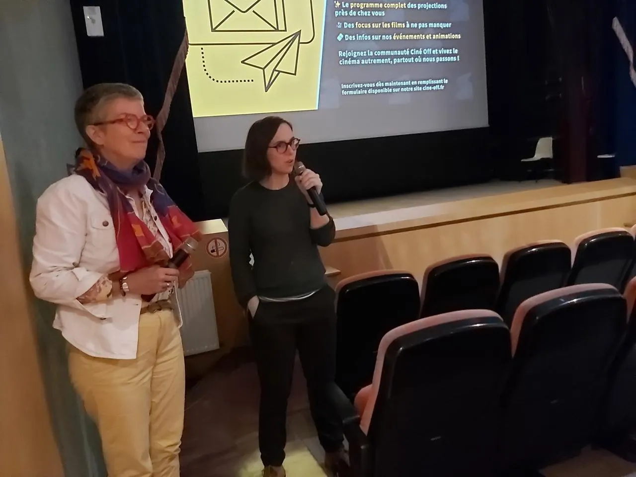 Solenne Berger (micro en main), directrice et programmatrice de Ciné Off. © Le Maine Libre