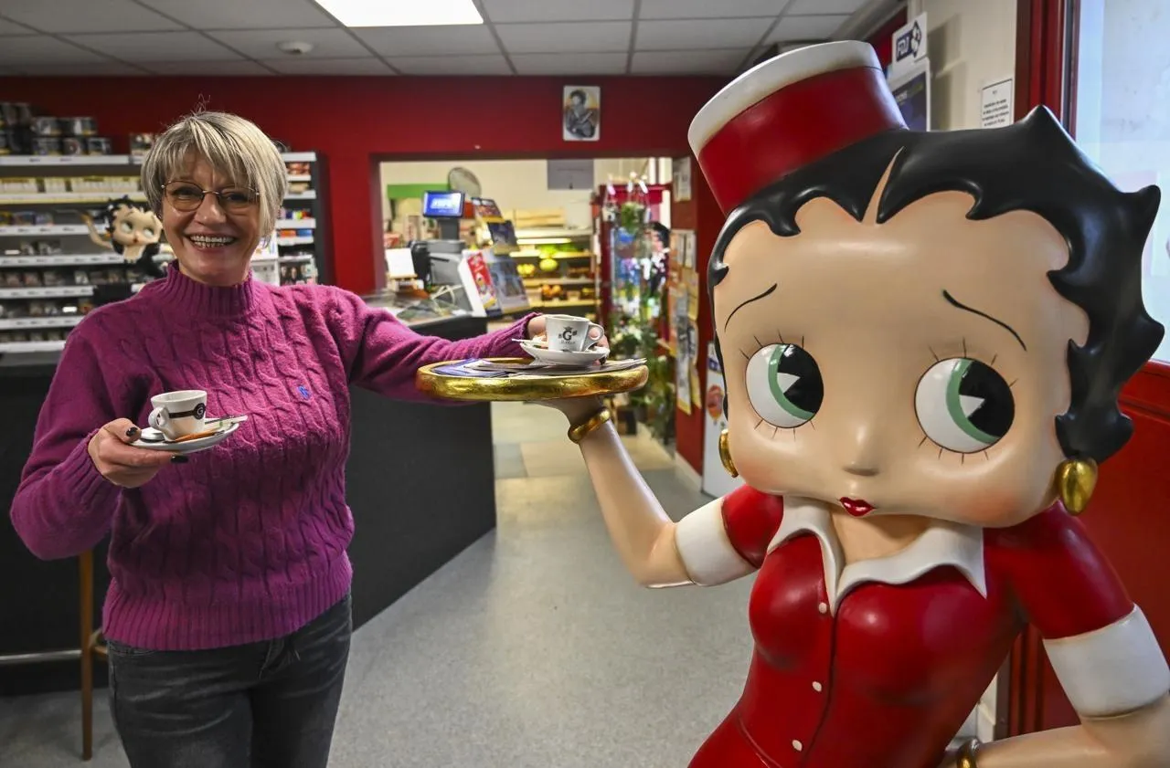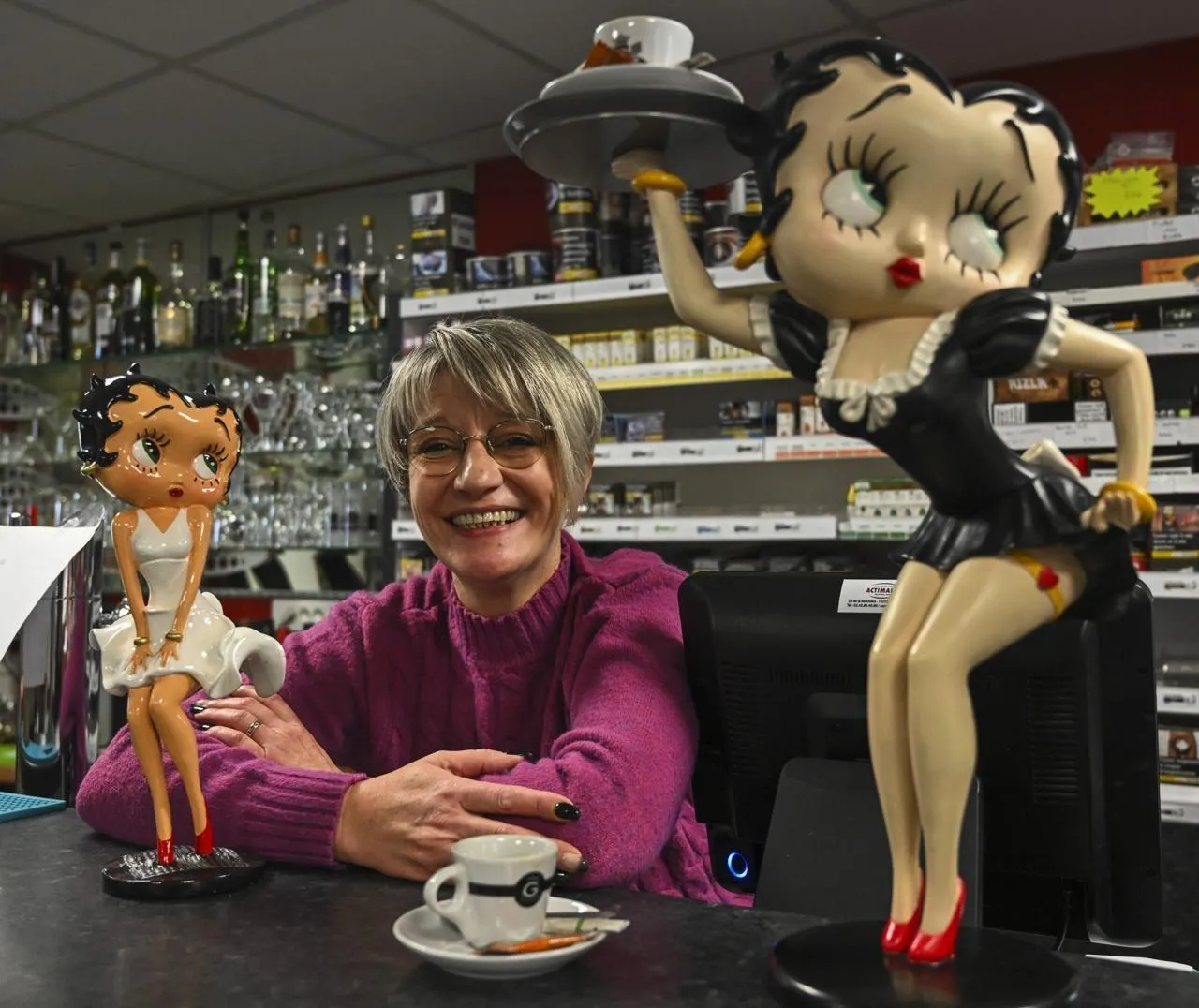Souligné-Flacé, lundi 22 décembre 2025. Stéphanie Baudorre, fan de Betty Boop, tient Le Saint-Rigomer, le bar-tabac-presse épicerie du village. ? © Le Maine Libre – Denis LAMBERT