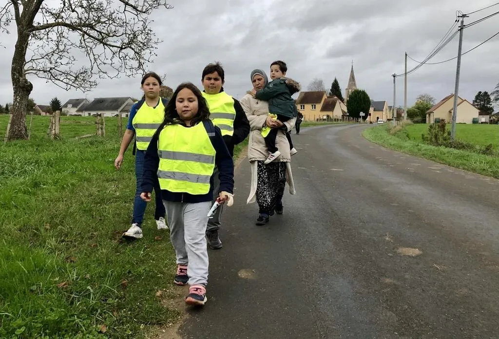 Le lundi 18 novembre 2024, à Saint-Biez-en-Belin (Sarthe), des bénévoles de la Ligue contre la violence routière ont distribué des gilets jaunes à des enfants qui marchent tous les jours le long d’une route départementale pour aller à l’école et en revenir. Un projet a été lancé pour imaginer un cheminement piétonnier sécurisé entre le centre bourg et ce quartier excentré.
