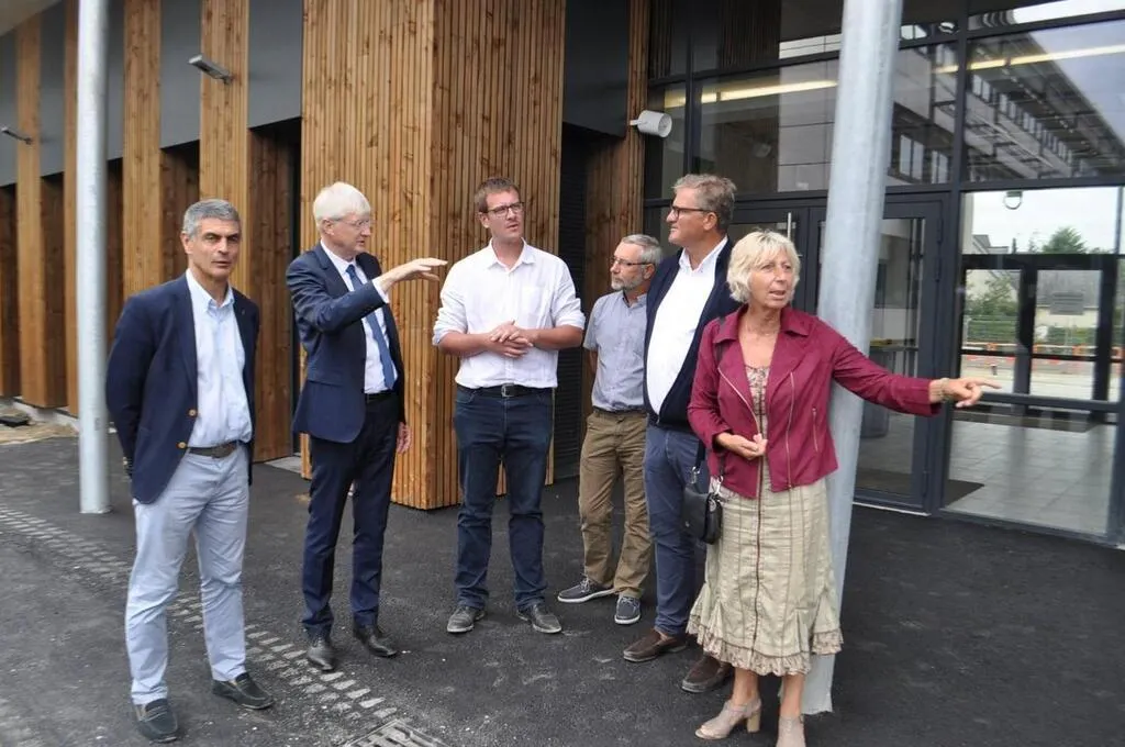 Daniel Chevalier et Martine Crnkovic, au premier plan, lors de la visite du collège Simone-Veil, en présence de Dominique Le Mèner, président du Conseil départemental. © Archives Le Maine Libre