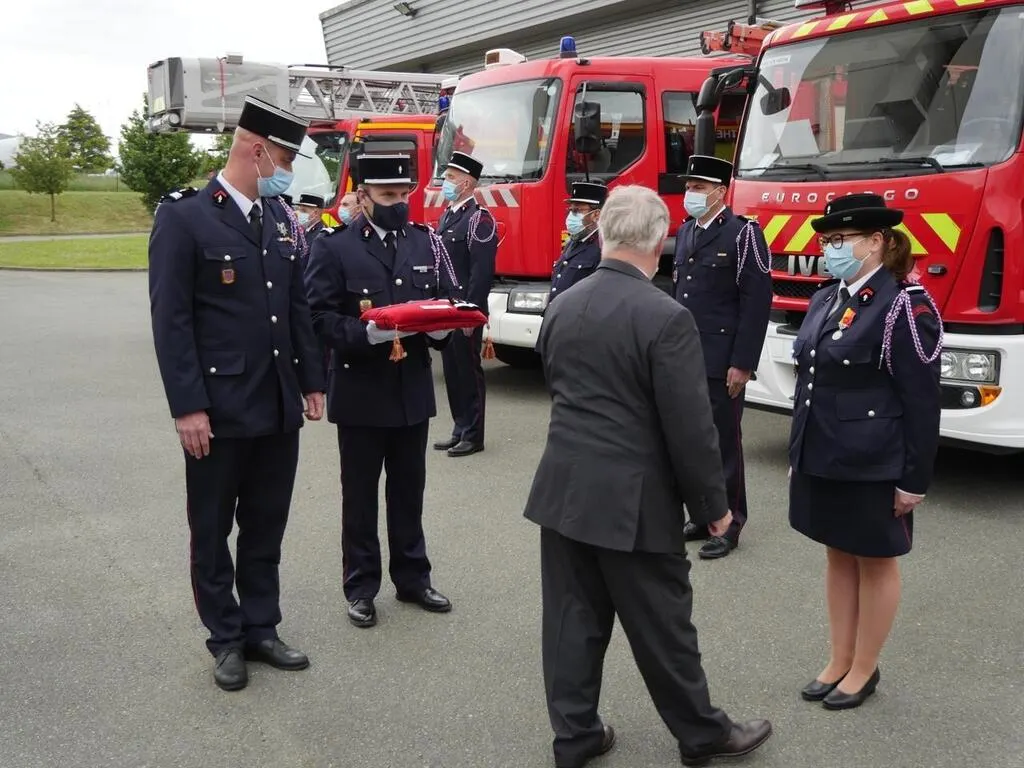 Une dizaine de chefs de centre et adjoints ont reçu, mardi 25 mai, à Sablé-sur-Sarthe, une fourragère tricolore. Une distinction accordée par le préfet afin de saluer l’implication des sapeurs-pompiers lors de la crise sanitaire, dont le transport de malades ou la gestion du centre de vaccination de la Rotonde au Mans