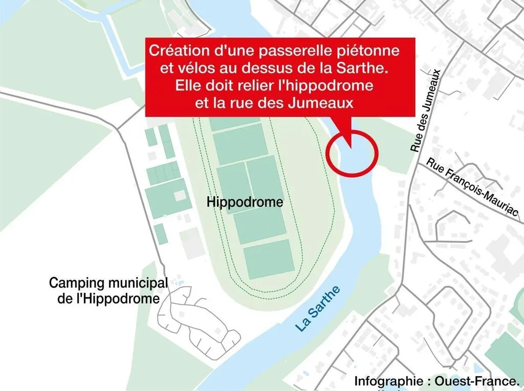 La municipalité de Sablé-sur-Sarthe fait le point sur ses projets de mobilité douce. Une étude de faisabilité pour la création d’une passerelle au-dessus de la Sarthe, entre l’hippodrome et la rue des Jumeaux, est en cours.