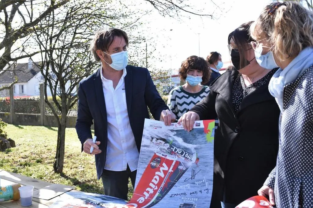 À bord du Maître Coq IV, le skipper a remporté la neuvième édition du Vendée Globe. Il a rencontré, jeudi 25 mars 2021, des salariés et des dirigeants du groupe LDC, à Sablé.