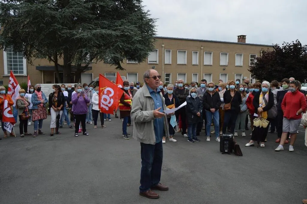 Autour de Gérard Baudry et la section locale GGT, environ 200 personnes se sont rassemblées dans la cour de l’hôpital. © Le Maine Libre