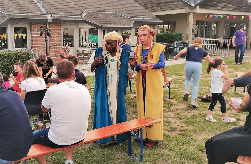 Vendredi soir, dès 18 h 30, 180 villageois ont envahi la cour de récréation de l’école Roland-Deret. « Nous avons dû faire de la place pour une vingtaine de personnes qui n’avaient pas réservé. Elles ont pu s’installer sous les tilleuls pour déguster la cuisine grecque que leur avaient préparée nos bénévoles », précise Céline Lenormand, la présidente de la Ruche, le centre social de Laigné-Saint-Gervais. La musique des Triporstreet a bien assourdi les oreilles des plus petits mais ils se sont réveillés au moment de la leçon de Mérovingiens, animé par la compagnie des Tombées de la lune. Une fois installées à distance respectueuse des mesures barrières par le directeur Yohann Lebreton, « toutes les familles ont ri avec entrain aux répliques historiques de Moniktrud et de Maritérégonde. Quelques papas en ont oublié le football européen diffusé sur leur téléphone ».