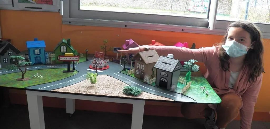 Pour cette enseignante, la bonne humeur et le jeu sont déterminants dans sa façon d’enseigner. Pour faire apprendre et comprendre cette abstraction qu’est la grammaire, elle a mis ses amis et sa famille à contribution pour construire la maquette du « Village des natures de mots » où, autour de la place du Verbe, les maisons abritent les déterminants, les noms, les adjectifs, etc.