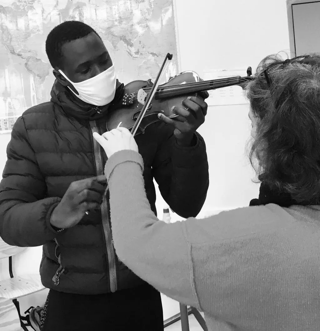 Violon, trompette, contrebasse… Les jeunes s’initient à différents instruments et apprennent à chanter. Il y a des choses qui se passent, on arrive à les faire chanter. On a même enregistré un conte musical qu’on a écrit avec eux.