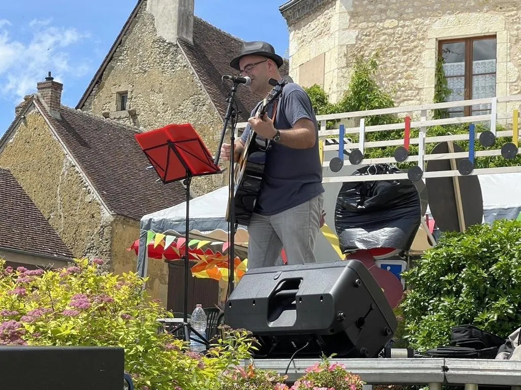 Nicolas Marec a inauguré l’après-midi scène ouverte dans le centre du village. © Le Maine Libre