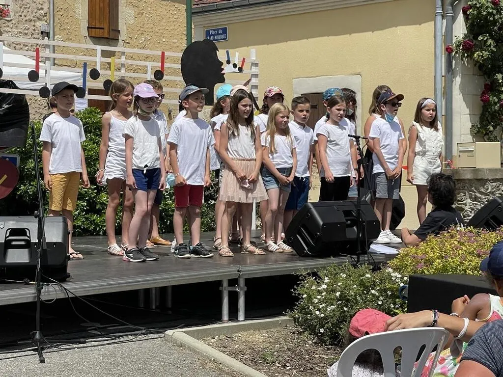Une chorale enfantine se fait entendre dans le bourg de Saint-Ulphace ce samedi 12 juin 2021 en début d’après-midi. Pendant que les spectateurs cherchent l’ombre et avant de laisser la scène aux chanteurs locaux, les enfants de grande section et CP chantent notamment devant leurs parents :Ils ont écrit les paroles et nous les avons mises en musique