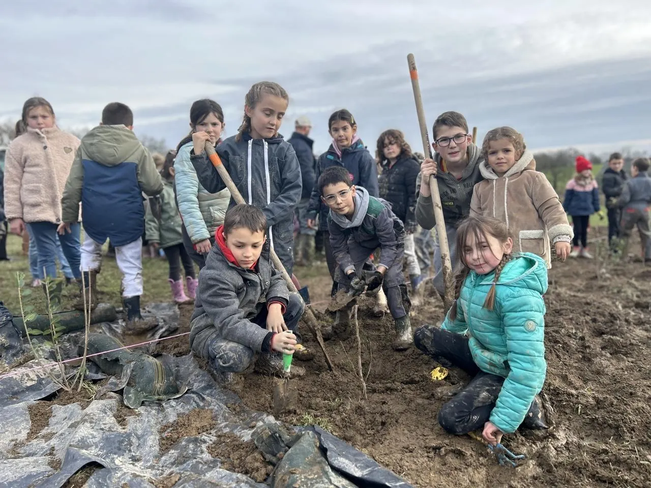 À Rouez et à Tennie (Sarthe), des écoliers ont planté des arbres sur des parcelles agricoles. Les arbres ? « Ça sert à protéger les vaches du vent et du soleil. C’est aussi très bien pour les insectes et les oiseaux. »