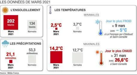 Sarthe. De -5 °C à 26,6 °C : un mois de mars sec et très ensoleillé... |