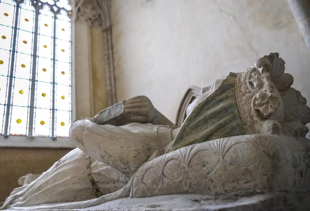 Après des siècles d’errance, de transferts, le gisant de la Reine Bérengère aujourd’hui restauré, a retrouvé sa place, dans le chœur de l’abbatiale. Une place souveraine. ? archives Maine Libre – Denis LAMBERT