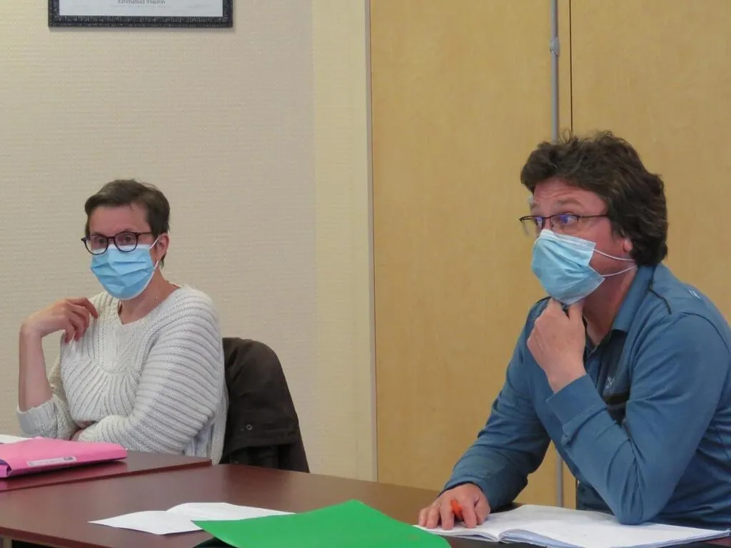 Cécile Roux et Florent Lehoux, conseillers municipaux, lors de la dernière réunion de conseil. © Le Maine Libre