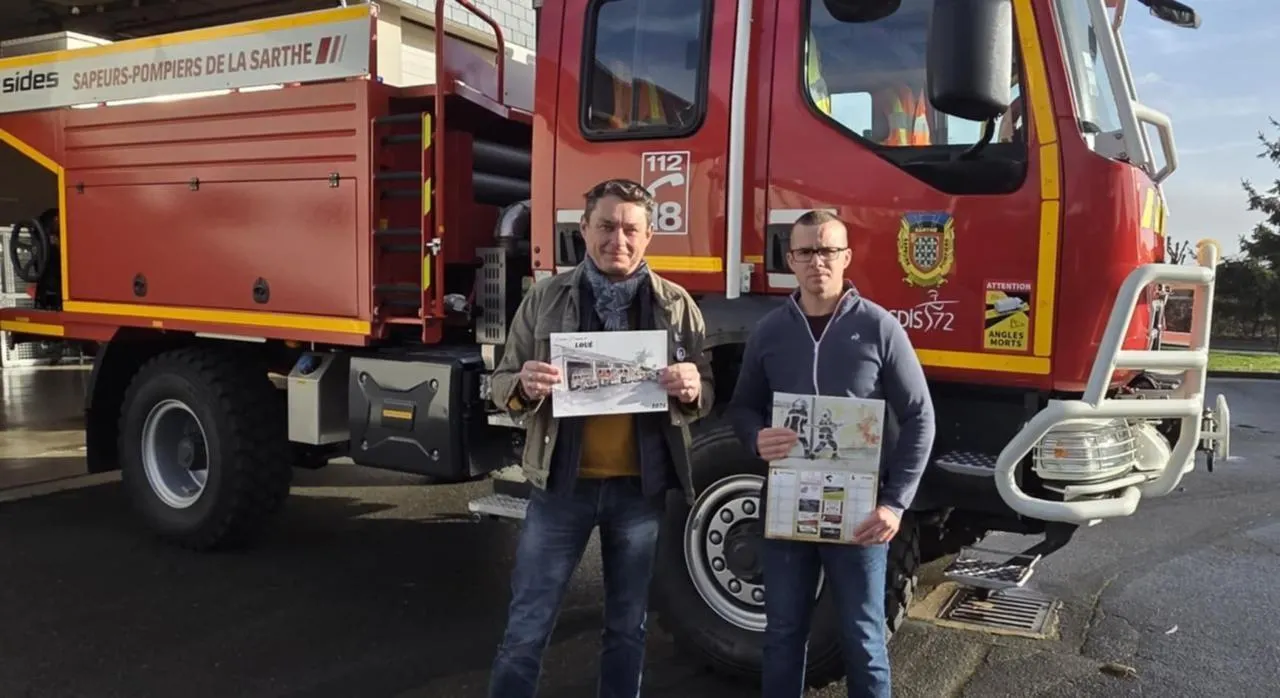 À la demande de l’amicale des sapeurs-pompiers de Loué, l’artiste Anthony Fourmy a réalisé dix dessins originaux pour illustrer le calendrier 2026, distribué depuis début novembre.