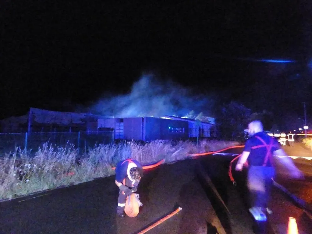 Un incendie s’est déclaré, dimanche 23 juillet 2023, dans la zone industrielle ouest de La Flèche, au sein de l’entreprise SPH. Malgré la présence de produits potentiellement dangereux, aucun risque de contamination n’a été détecté par les pompiers. © Ouest-France