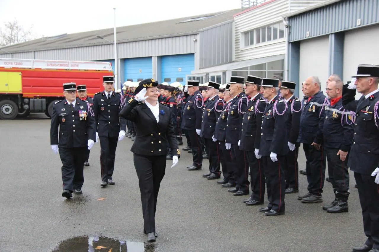 À l’occasion de la cérémonie de la Sainte-Barbe, ce samedi 6 décembre 2025 à La Flèche (Sarthe), l’action de plusieurs sapeurs-pompiers fléchois intervenus lors des incendies du mois de juin a été saluée. © Ouest-France