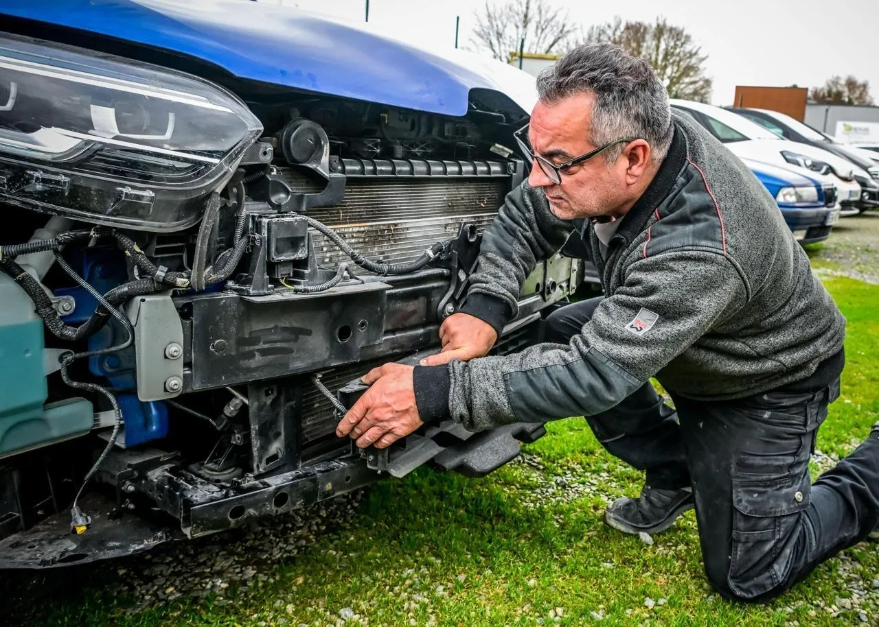 Tuffé-Val-de-Chéronne, mercredi 10 décembre 2025. À la carrosserie de La Pelouse, les collisions avec des animaux sauvages, et notamment les sangliers, représentent une grosse activité de septembre à février. © Le Maine Libre - Yvon LOUÉ