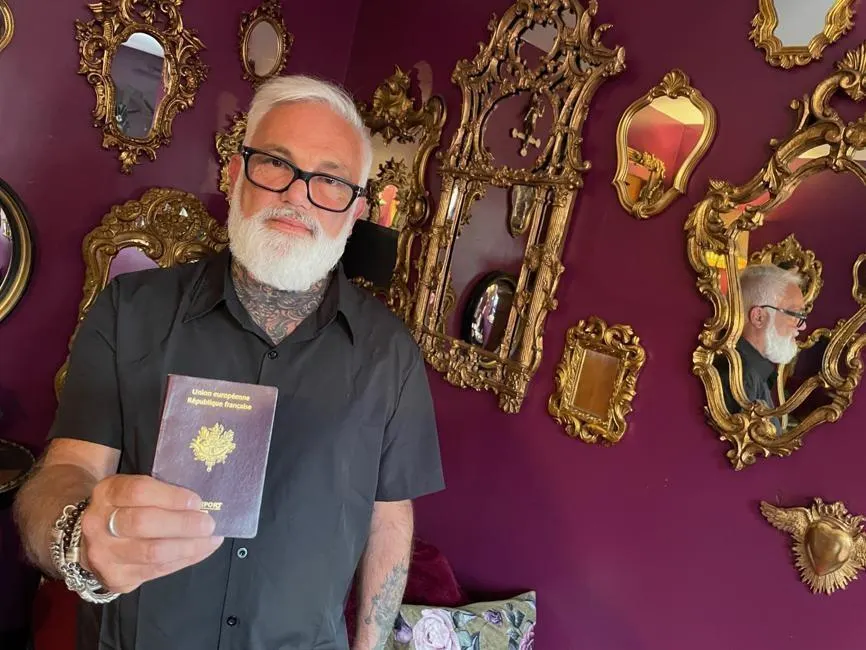 Serge Motillon, ici avec son passeport expiré en 2022, ne comprend pas pourquoi il lui est si difficile d’obtenir de nouveaux documents d’identité. © Photo : Ouest-France