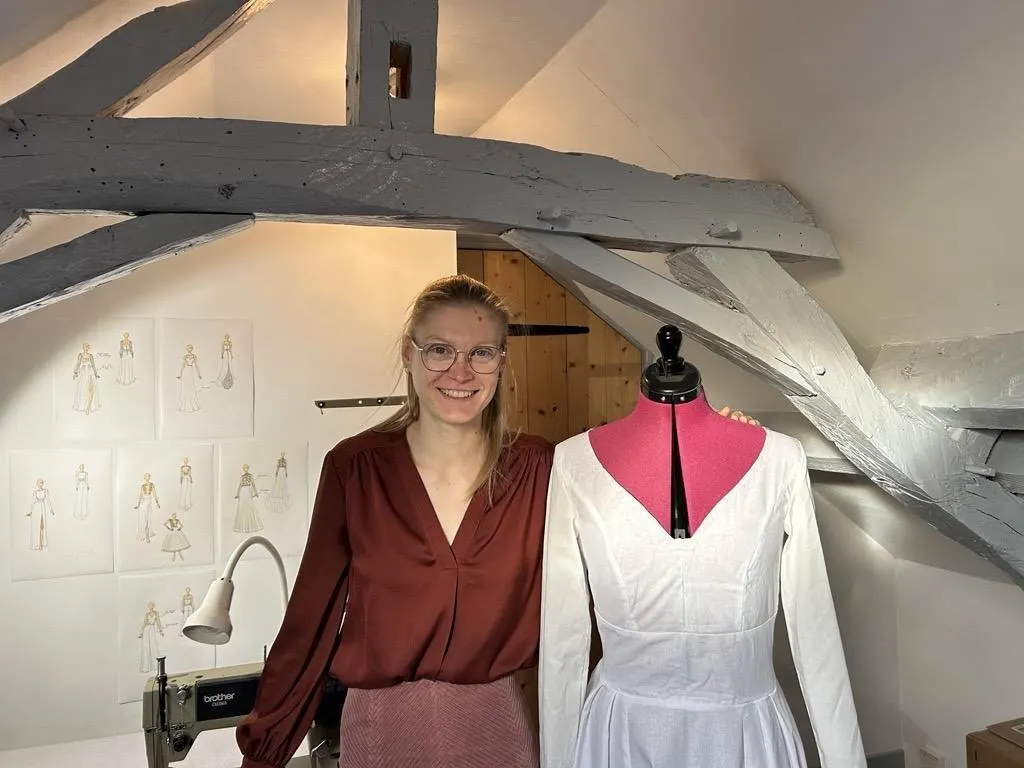 À 27 ans, Solenne Joseph quitte la Confection fléchoise pour se mettre à son compte avec Maison d’Héra. Installée à Savigné-sous-Le Lude, près de La Flèche (Sarthe), elle crée désormais des robes de mariée sur mesure, amovibles et à domicile, pensées avec et pour chaque future épouse.
