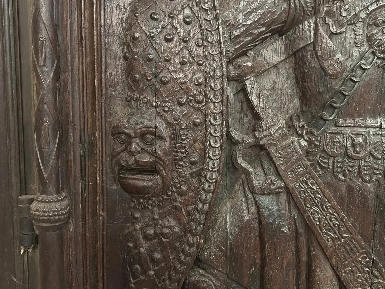 Sculptée au XVe siècle, la porte du soldat musulman de la chapelle Notre-Dames-des-Vertus, à La Flèche (Sarthe), est l’un des plus vieux objets de la région. © Ouest France