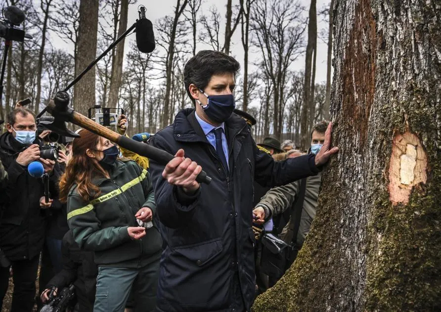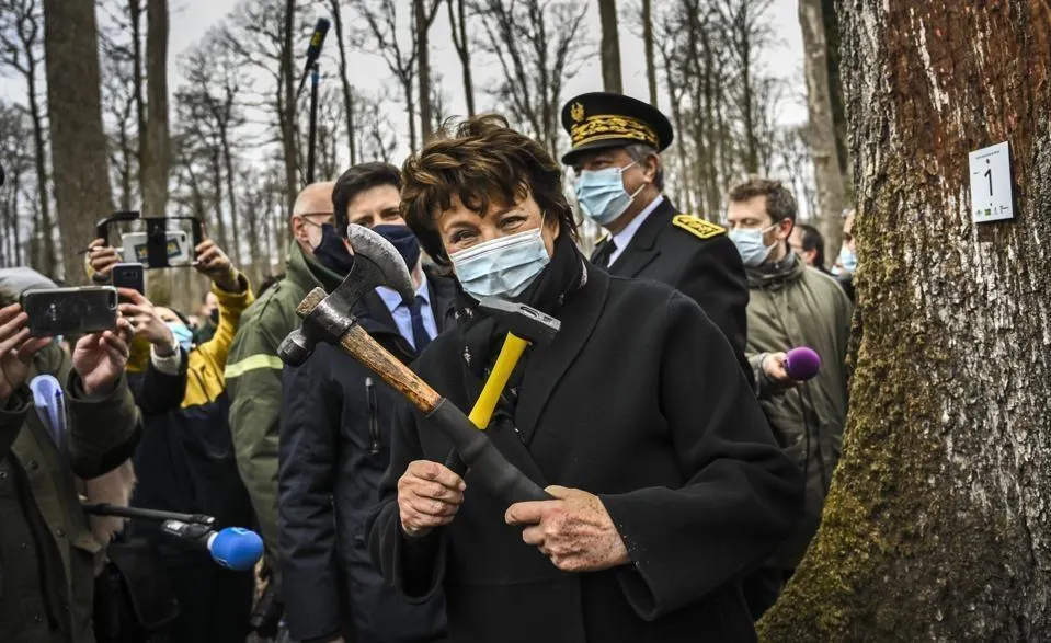 Le ministre de l’Agriculture Julien Denormandie a été invité à marquer un chêne, tandis que Roselyne Bachelot a posé une plaque sur le premier arbre qui sera abattu avant de rejoindre Paris.