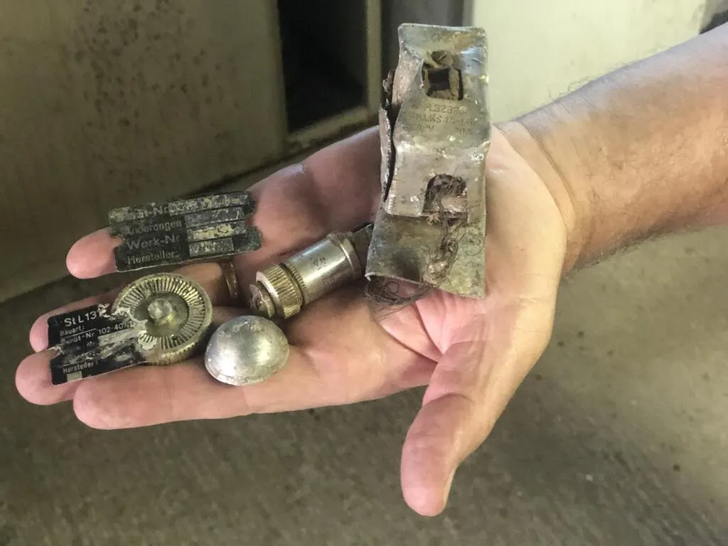 Villeneuve-en-Perseigne, jeudi 10 juin 2021. Dominique Daniel a pu récupérer de très nombreux vestiges de la Seconde Guerre mondiale dans les forêts de Perseigne et dans les alentours. © Photo Le Maine Libre