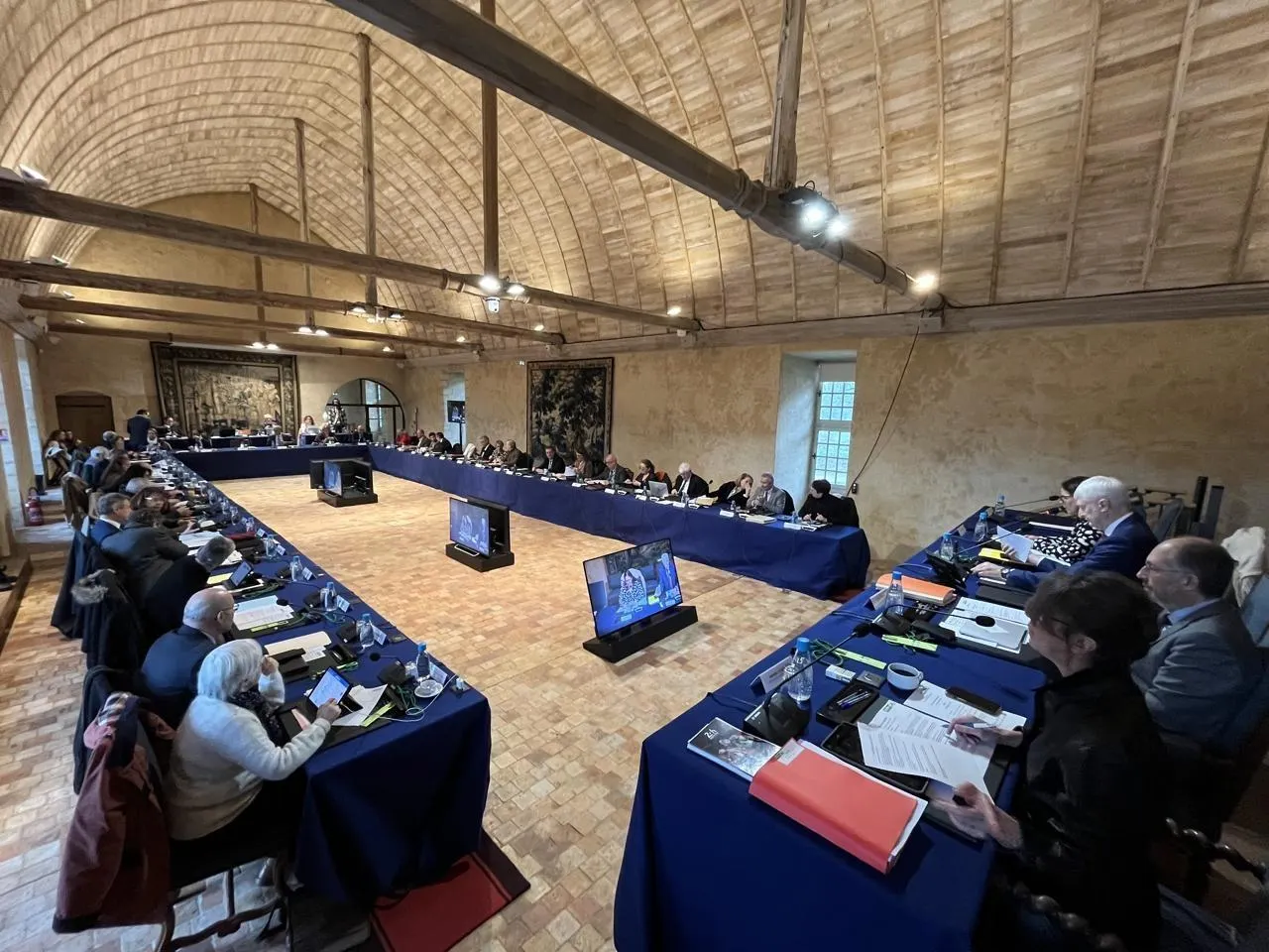 L’assemblée départementale réunie dans l’abbaye de l’Épau. © OUEST-FRANCE.