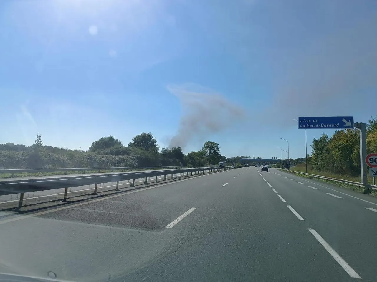 La fumée était visible jusque sur l’autoroute A11 à l’entrée de La Ferté-Bernard. © Le Maine Libre