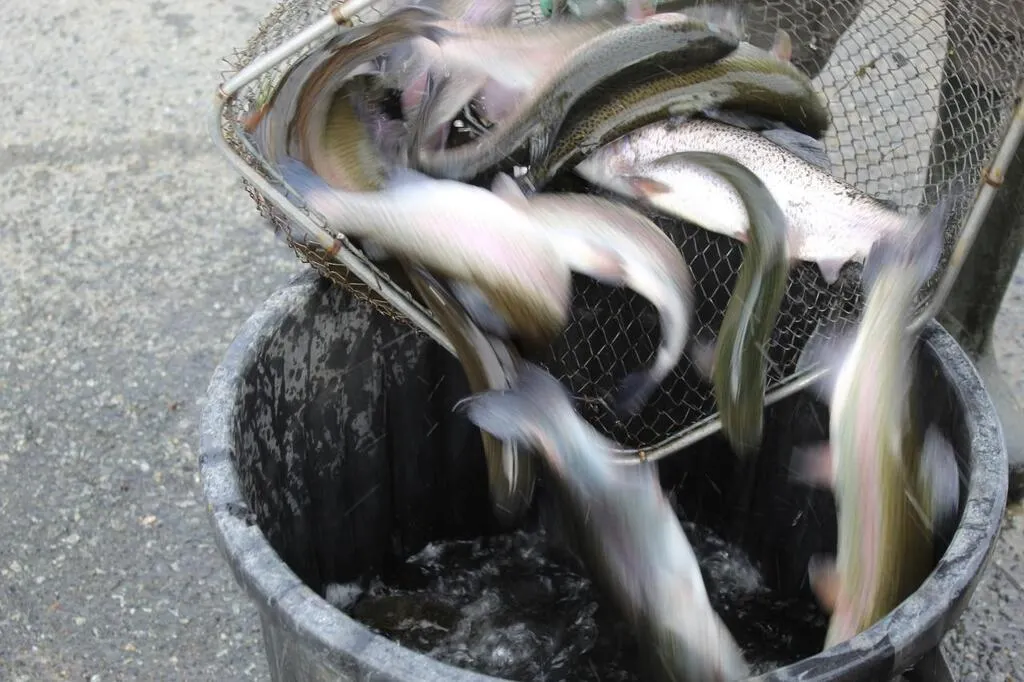 100 kg ont été déversés pour ce lâcher de truites. © Le Maine Libre