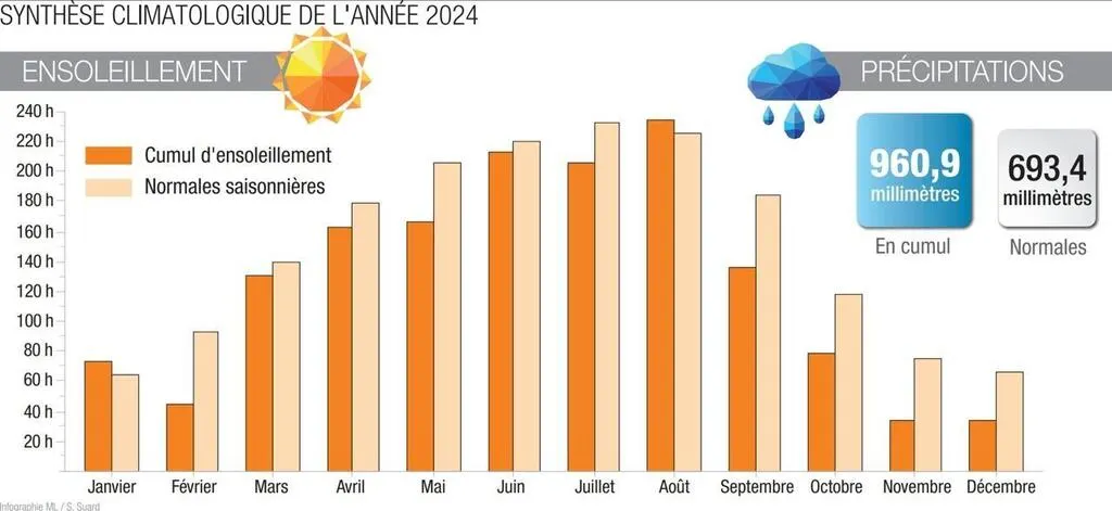 L’année 2024 a été marquée par un record de précipitations et de non-ensoleillement. Les températures sont néanmoins restées douces.