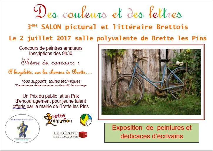 Exposition de peintures Dédicaces d'écrivains locaux Concours de peintres amateurs sur le thème "A bicyclette, sur les chemins de Brette..."