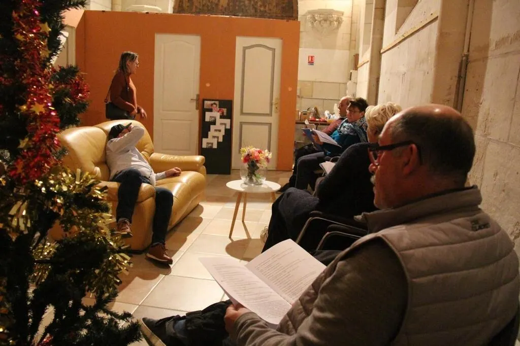 Michel, Dominique, Olivier, Hélène, Malika, Fabienne et Monique sont à l’affiche de « La Poule de Noël », la nouvelle comédie de l’Association théâtrale de Crosmières. © Ouest-France