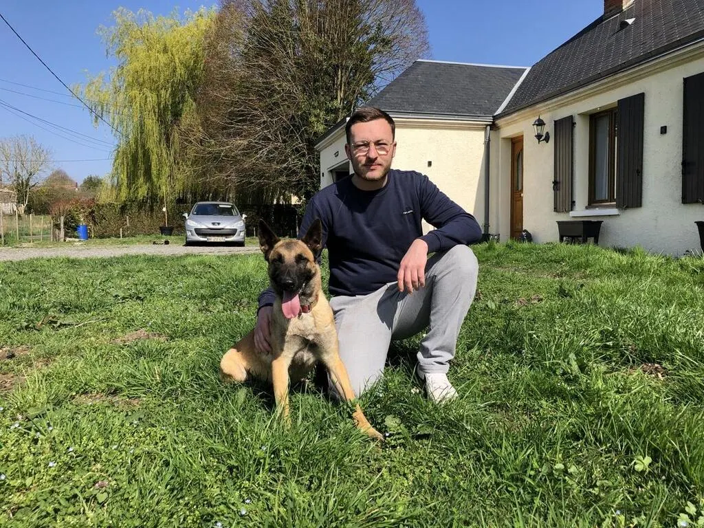 Killian Marotta vient de lancer son activité d’éducateur canin à Mayet, au nord-est de La Flèche (Sarthe). Ici avec Tina, un berger belge malinois de 2 ans. © Ouest-France