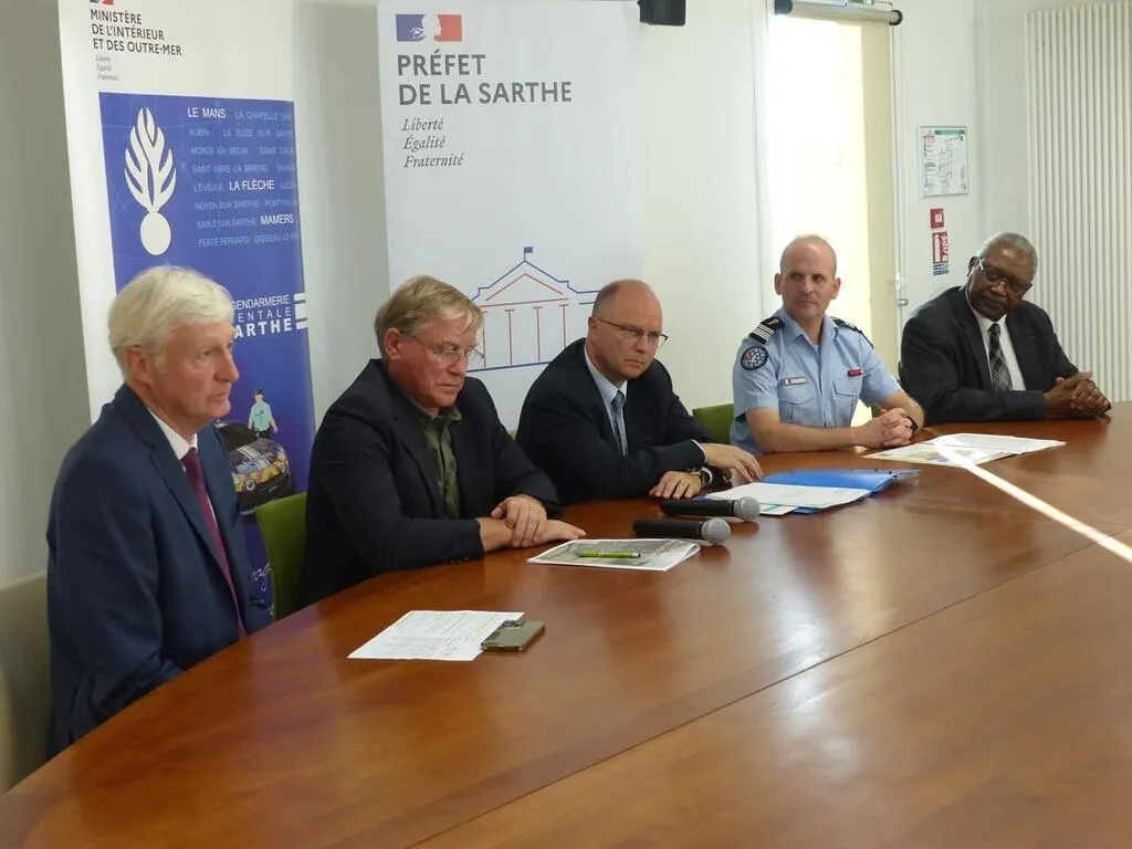 La décision officielle de la nouvelle brigade a été confirmée, mardi, lors d’un point presse avec les élus départementaux et le préfet de la Sarthe, Emmanuel Aubry, au centre. © Le Maine Libre