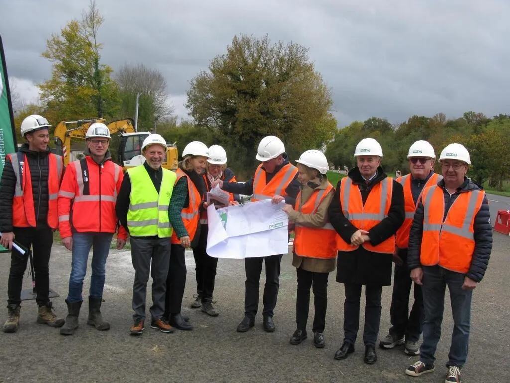 Élus et responsables ont lancé les travaux du giratoire, mardi 12 novembre 2024. © Ouest-France