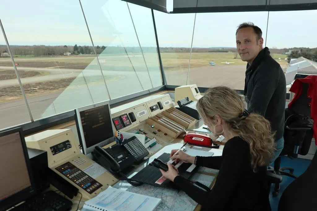 Marina Fisson et Julien Bonnefoy sont agents AFIS à l’aéroport du Mans – Arnage (Sarthe). Ils ont notamment en charge d’assurer la fluidité du trafic aérien. © Ouest-France