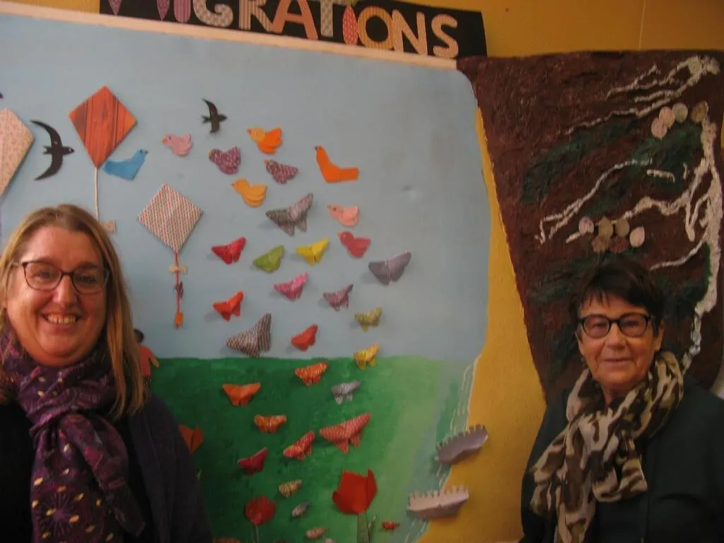 Anne Camut-Grimard (à gauche) avec Odile Bernaus, coprésidente de l’association Cénomane multiculturelle devant la fresque réalisée lors de la quinzaine de la Migration © Ouest-France