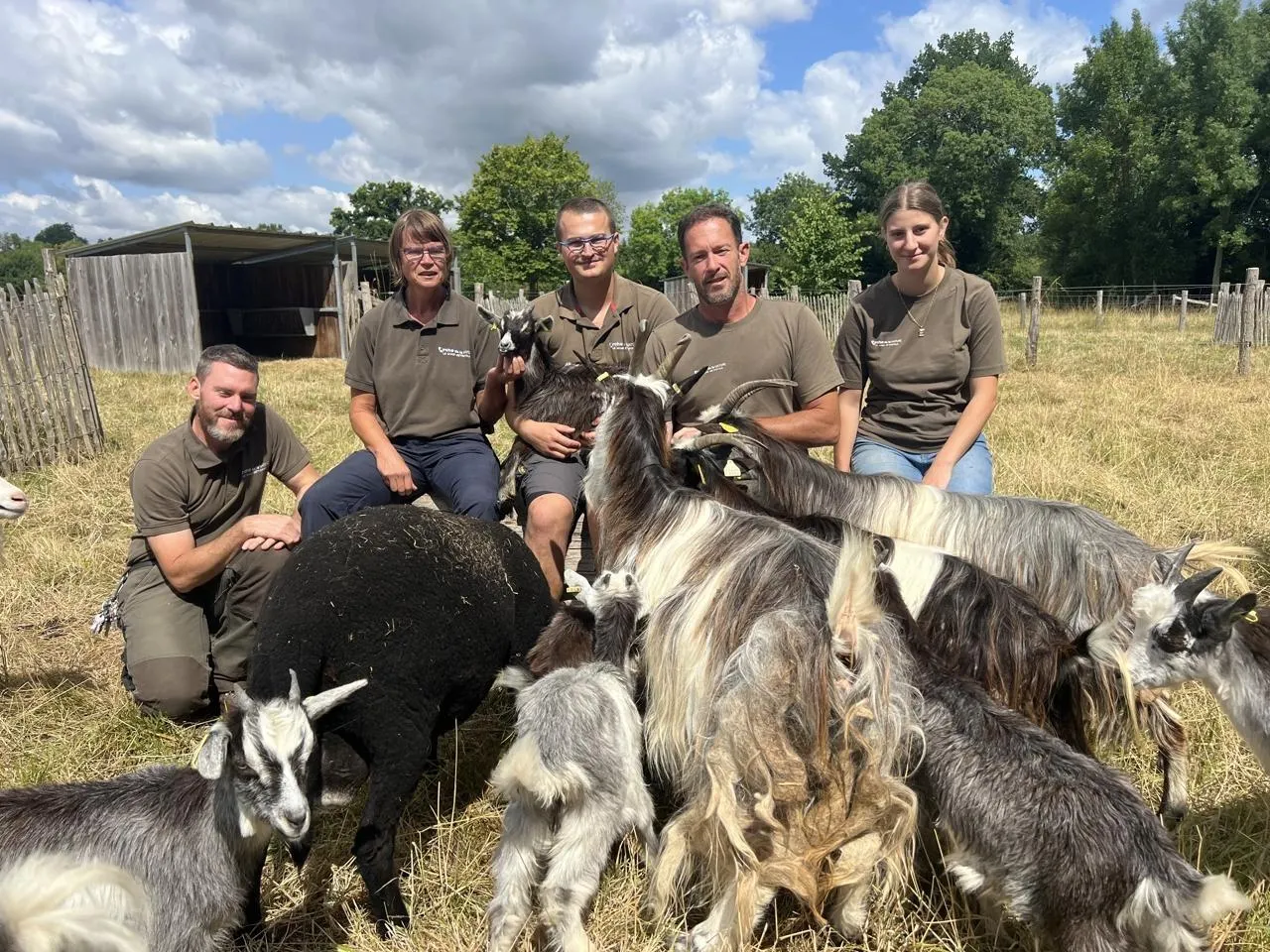 Romain Roboam, Nadège Bellanger, Baptiste Chaufour, Gwenaël Lhuissier et Audrey Hamon bichonnent toute l’année les animaux de la ferme de l’Arche de la nature. © Ouest-France