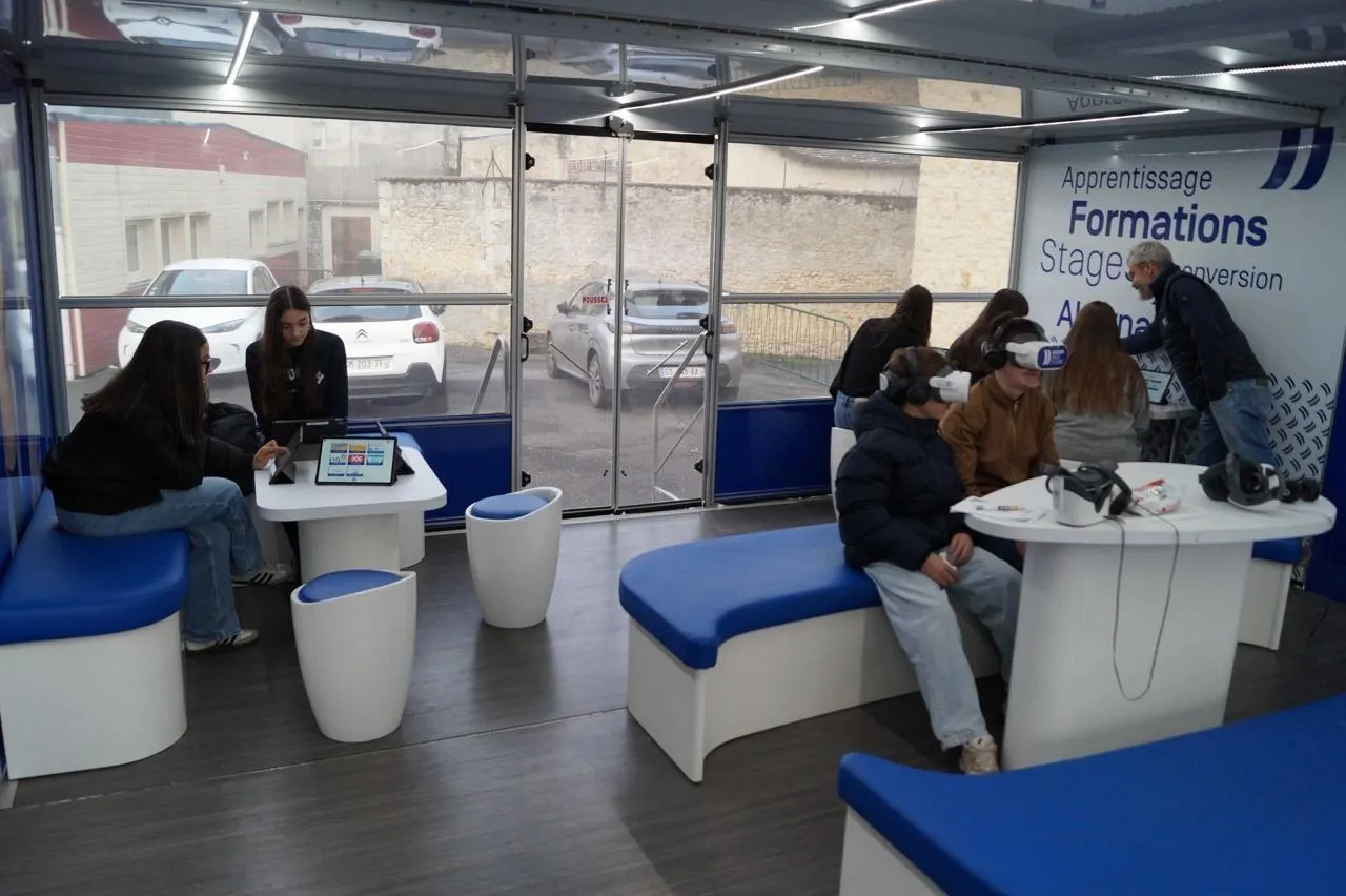 Mis à disposition gratuitement par le conseil régional des Pays de la Loire, l’Orientibus est un véhicule qui, une fois déployé, permet d’accueillir une quinzaine de personnes dans un espace de 30 m².Équipé de casques de réalité virtuelle et de tablettes numériques, il offre aux élèves des outils de découverte des métiers et des formations sous un angle innovant et ludiqueÂ