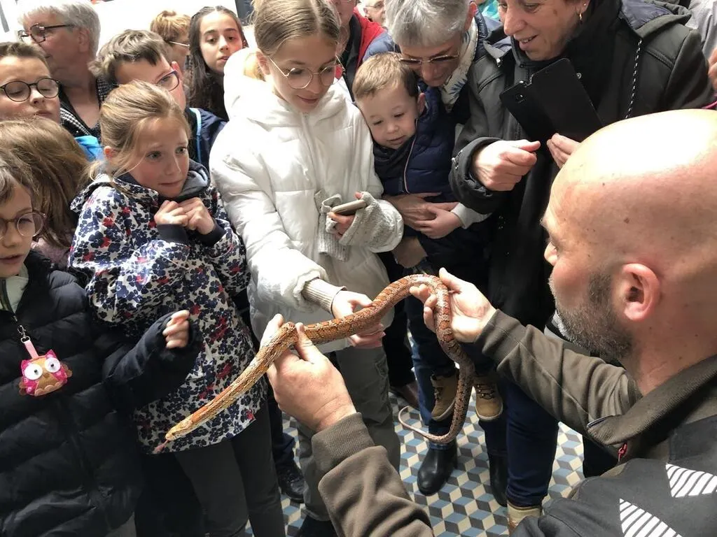 Regards effrayés, visages qui se blottissent contre les jambes des parents, mains qui osent une caresse du bout du doigt sur les écailles… Le serpent des blés ne laisse pas indifférent, ce dimanche ...