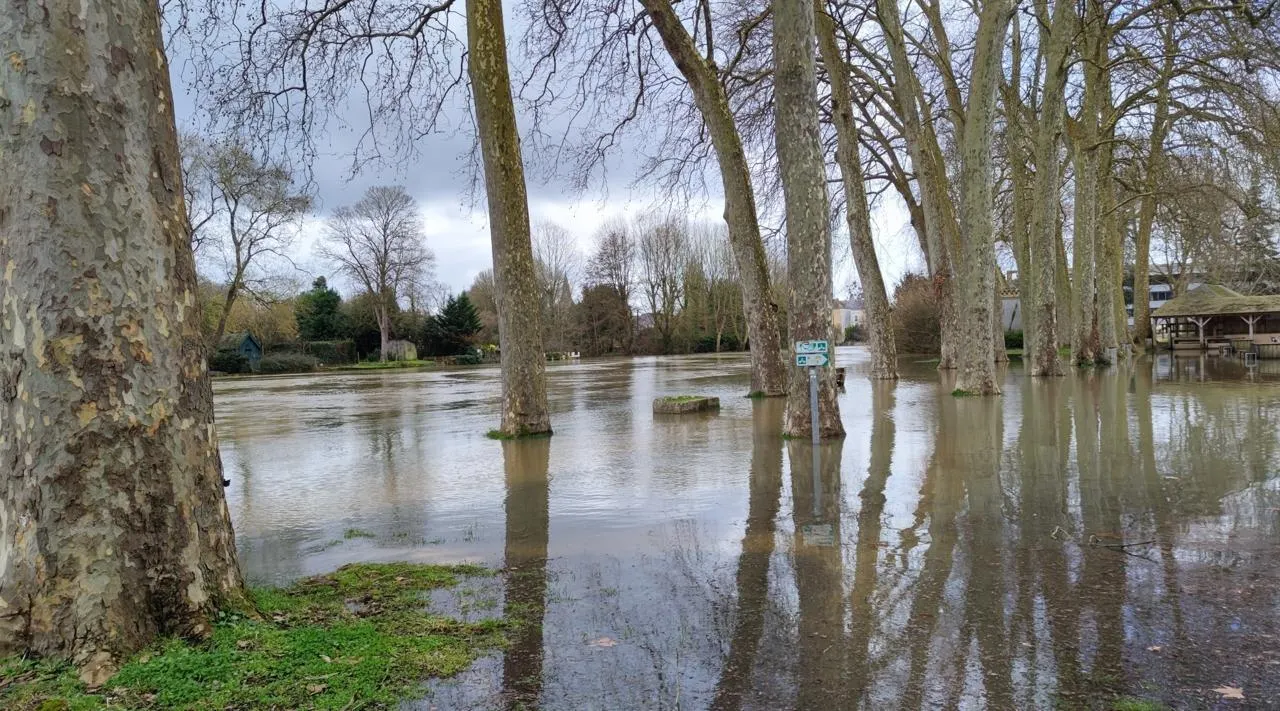 Le parc des Carmes à La Flèche (Sarthe) est en partie sous l’eau depuis le lundi 16 février 2026. © Ouest-France